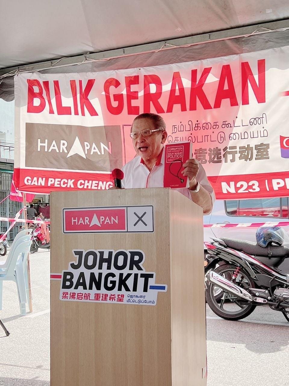 (吉隆坡4日讯)前首相兼祖国斗士党会长敦马哈迪称,尽管参与柔佛州选举的政党众多,但是只有祖国斗士党的候选人真正廉洁,没有贪污滥权的历史。 马哈迪今天在给柔佛州选民的公开信中说,柔佛州议会议会解散,因...