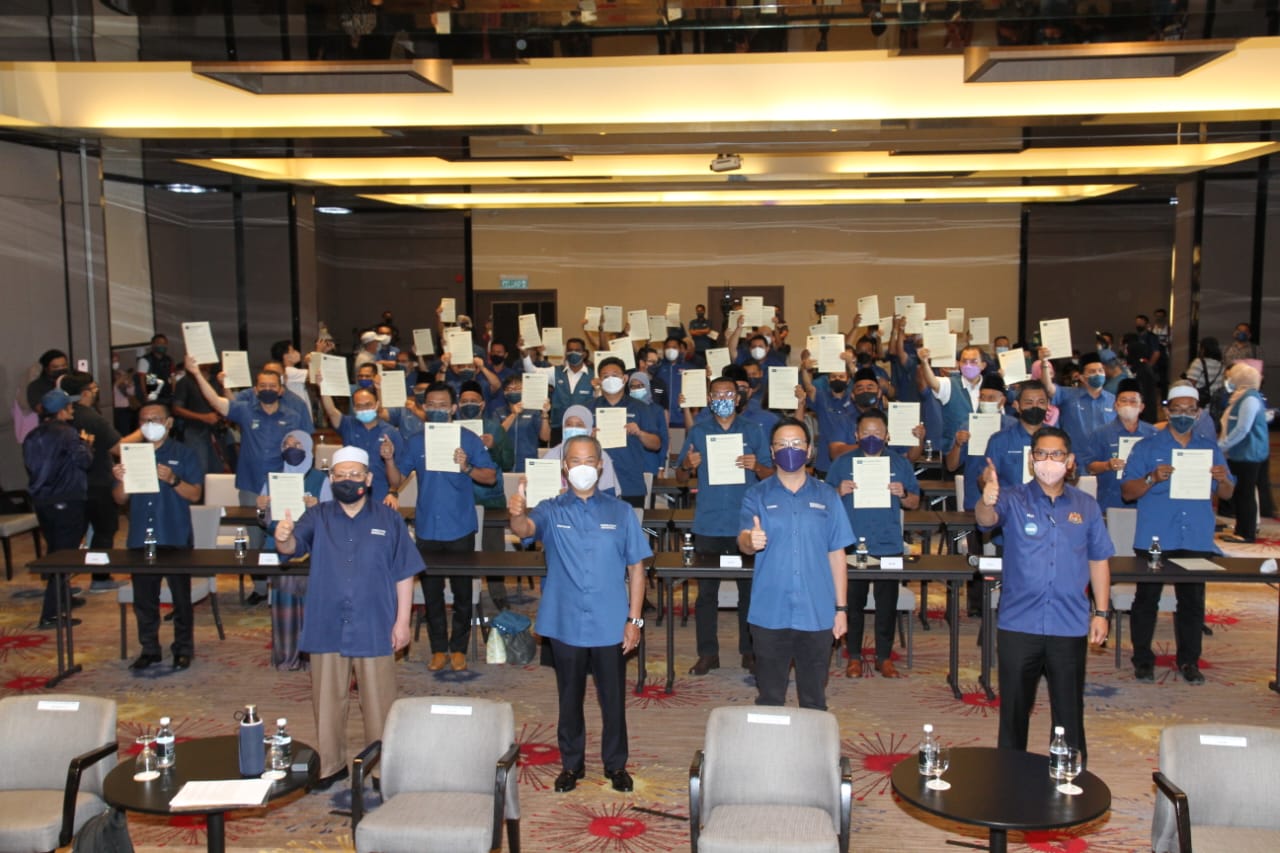 (新山3日讯)国盟柔佛州选56名候选人今日签署廉洁宣誓书,拒绝贪污、违规和滥权。 56名候选人悉数到齐,在国盟主席丹斯里慕尤丁、民政党主席拿督刘华才、伊斯兰党署理主席端依布拉欣和土团党署理主席袁怀绍...