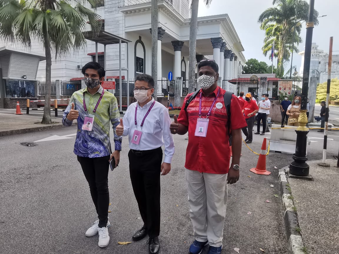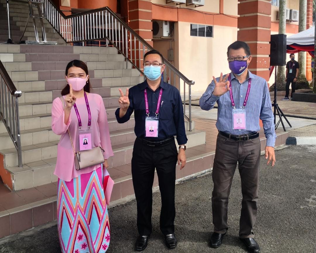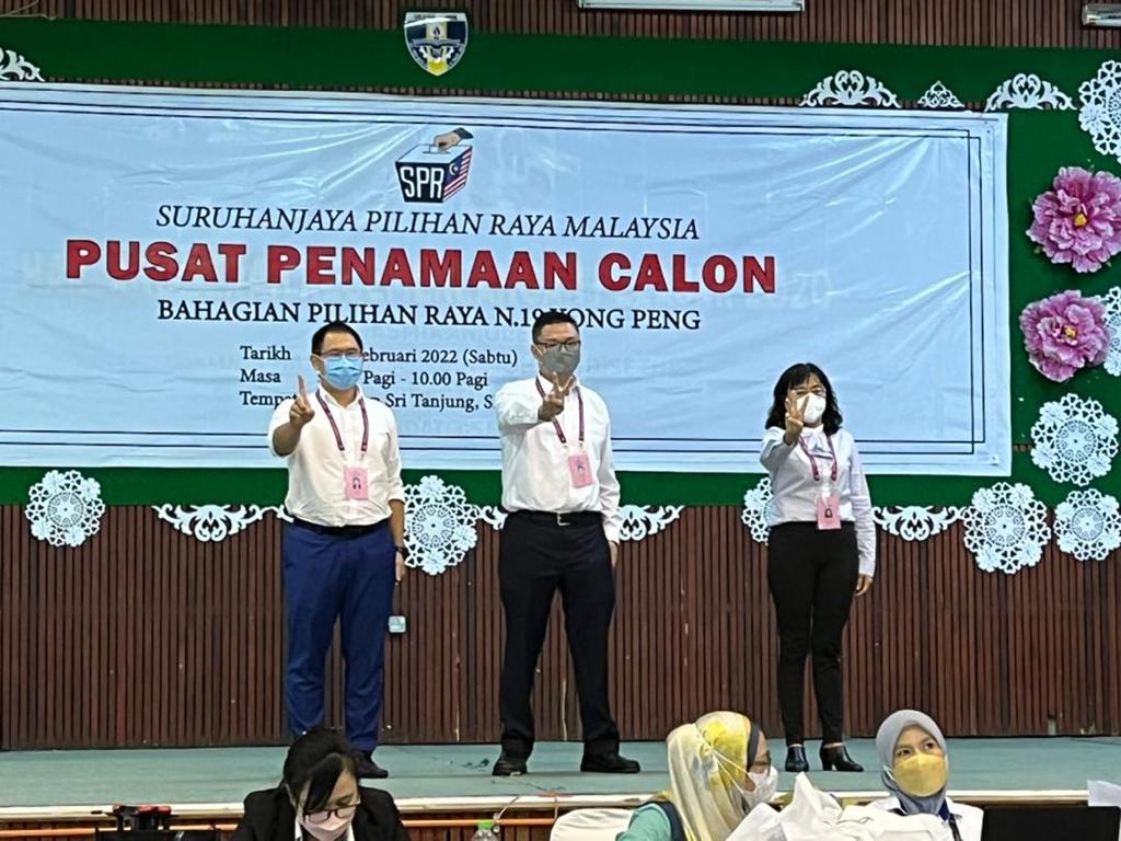 (麻坡26日讯)文打烟州议席3名来自民政党、行动党和马华的华裔候选人于今早8时30分开始陆续抵达位于麻坡钻喜纪念堂的提名中心。 率先抵达提名中心的国盟民政党候选人陈国鸿除了提名人和附议人,也有不少支...